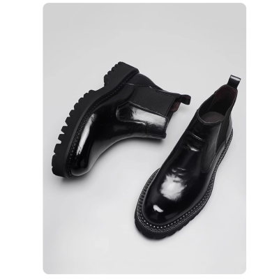 梵沃利秋冬男士真皮切尔西靴男手抓纹厚底马丁靴中帮一脚蹬皮靴