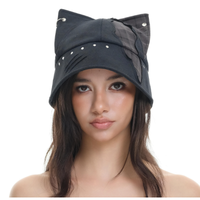 GENZERO「kitty」猫耳渔夫帽铆钉豹纹猫耳朵自闭帽男女同款帽子